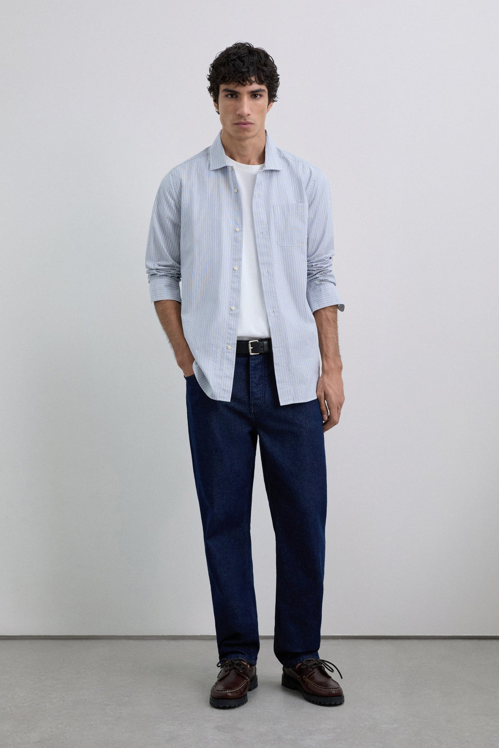 Denim jeans made of 100% cotton. Cropped Button and zip fastening. Side and back pockets. Belt loops at the waist.