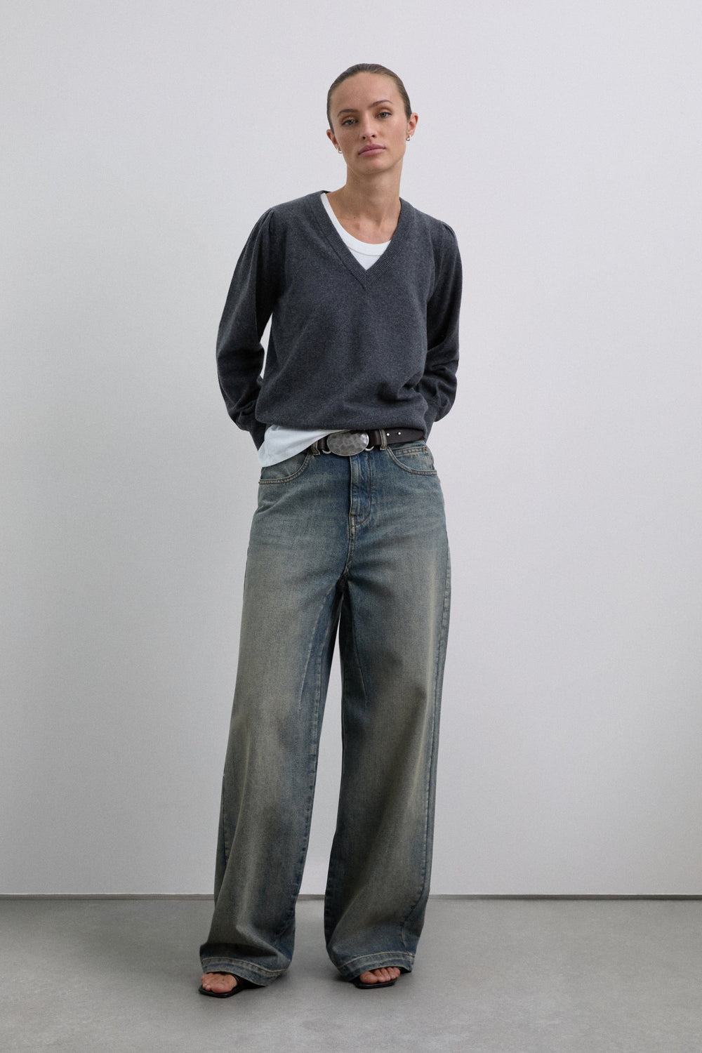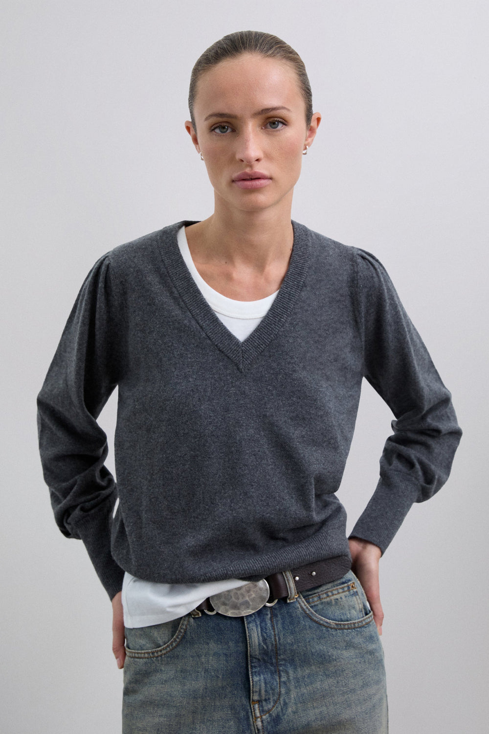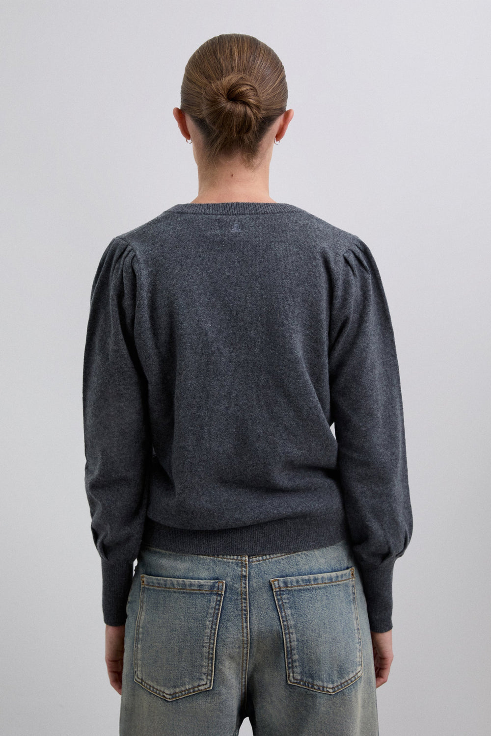 Trui van wolmix met V-hals. Regular fit. Lange licht poffende mouw met geribde boord. Geborduurde ton sur ton doodskop aan de achterkant.