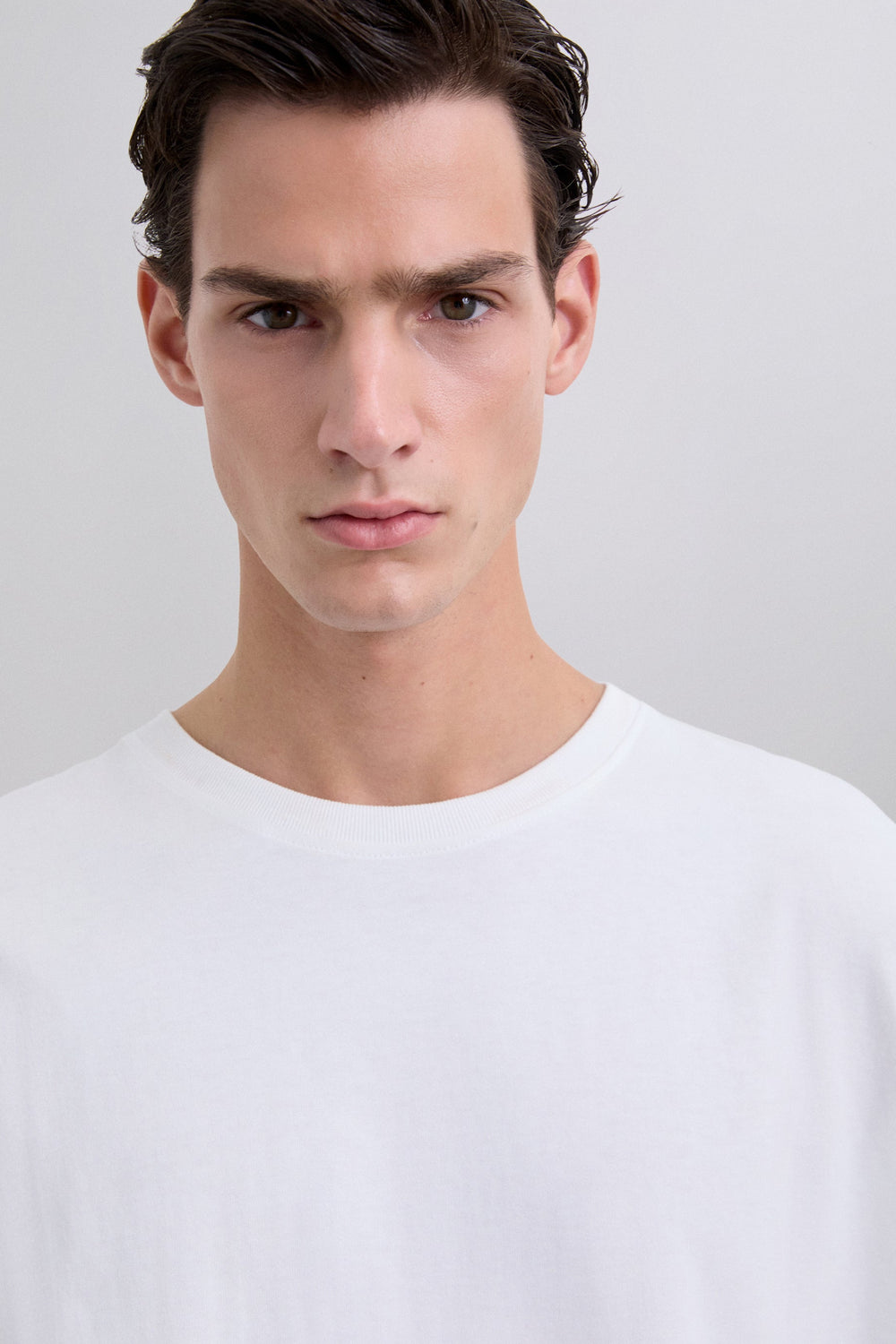 T-shirt made of 100% organic cotton. Short Sleeve. Round neck. Boxy fit. Ribbed trim.