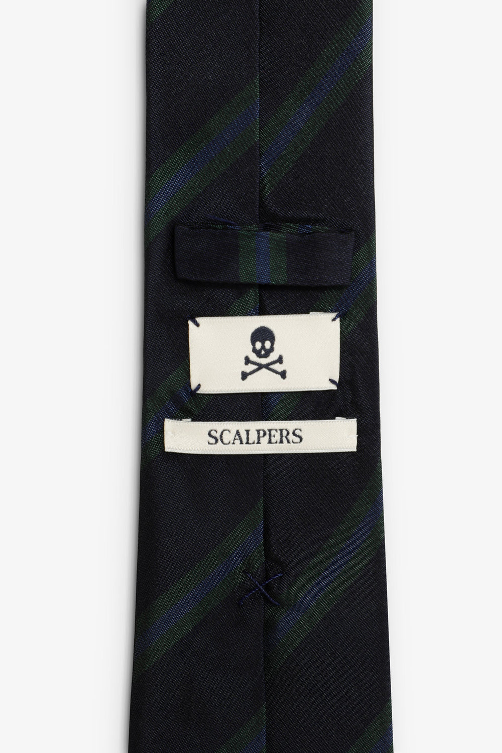 Striped tie made from 100% silk. 7.5 cm wide blade.