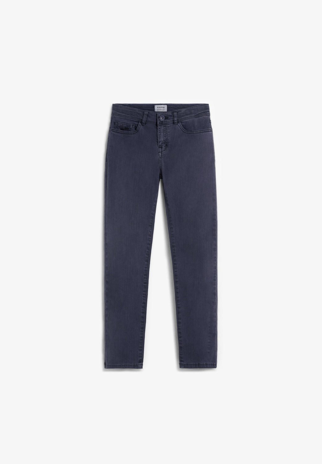 Trousers made of organic BCI cotton. Front button fastening. Front and back pockets.
