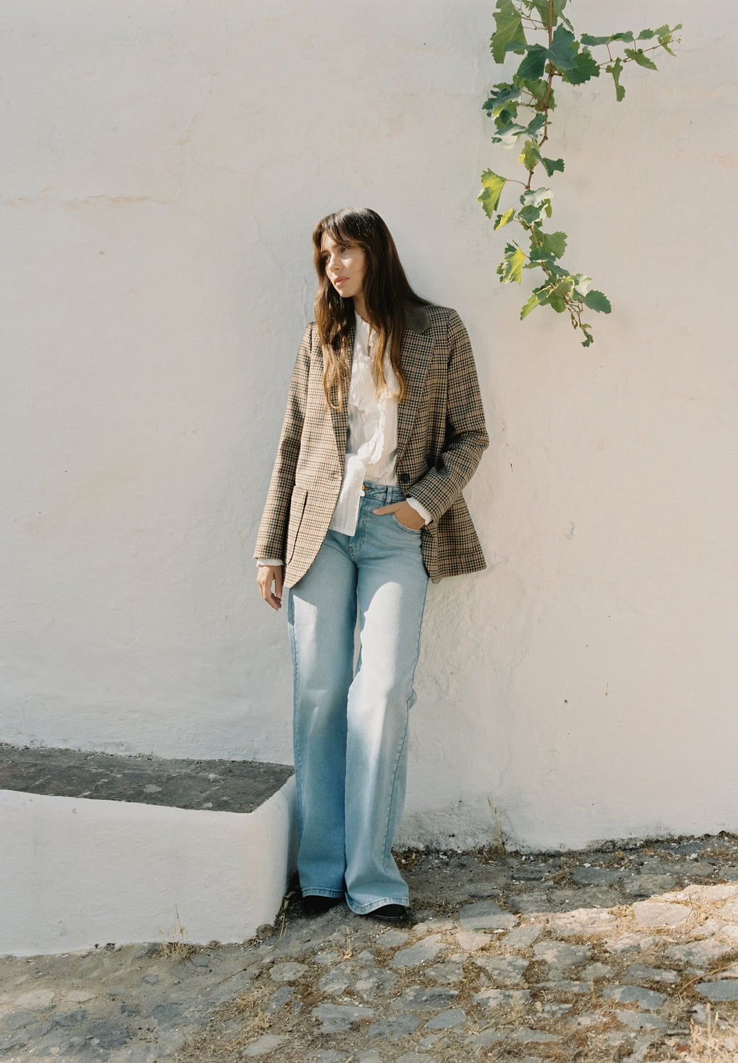 Long sleeve blouse made of 100% cotton. Classic collar and ruffle in smocked fabric. Mother-of-pearl buttons.