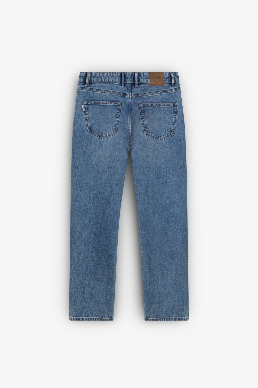 Jeans made of BCI cotton. Button and zip fastening. Two side pockets and back pockets. Belt loops at the waist.