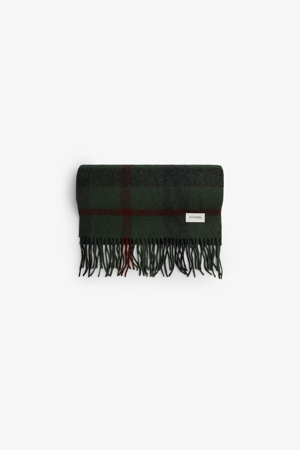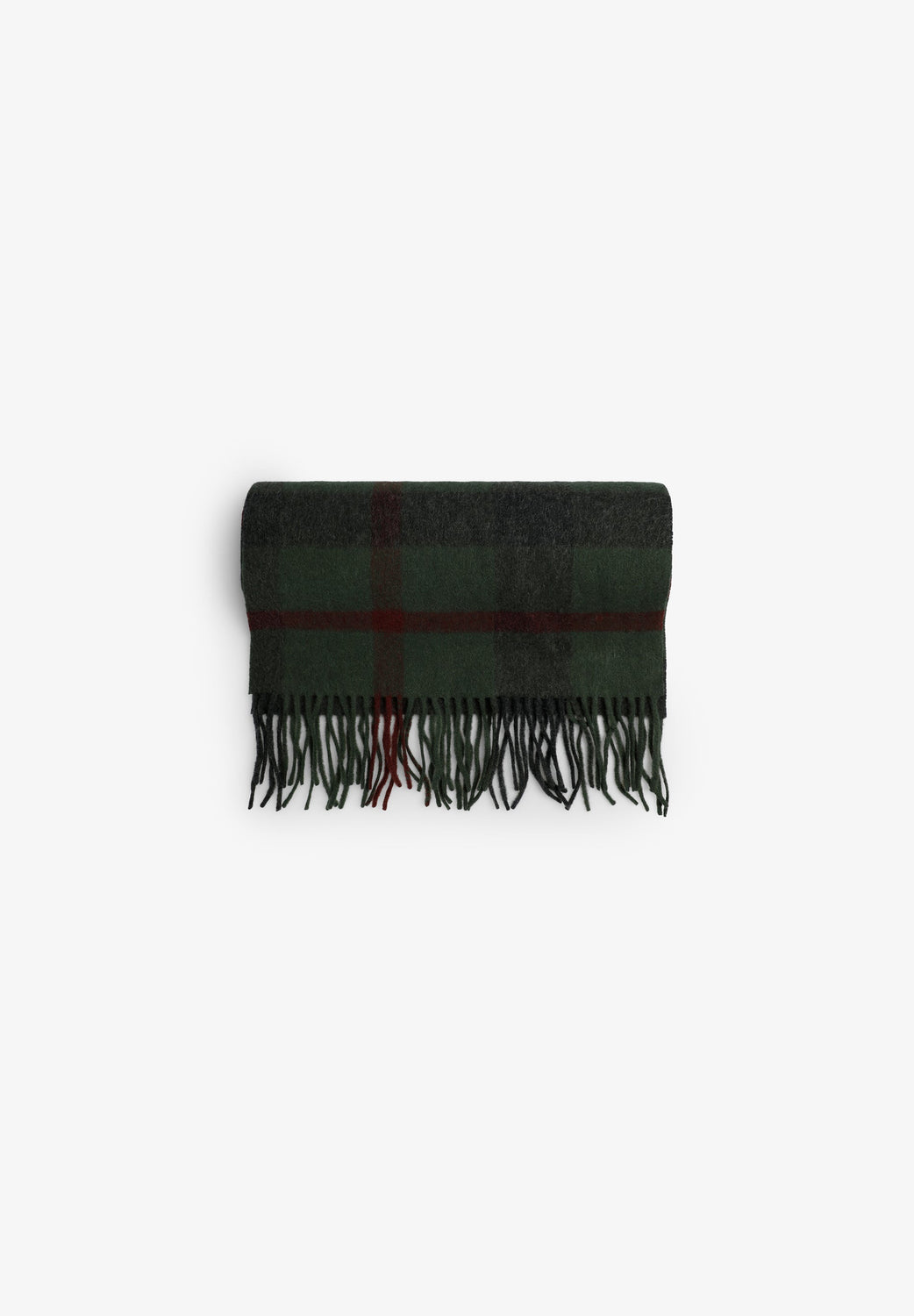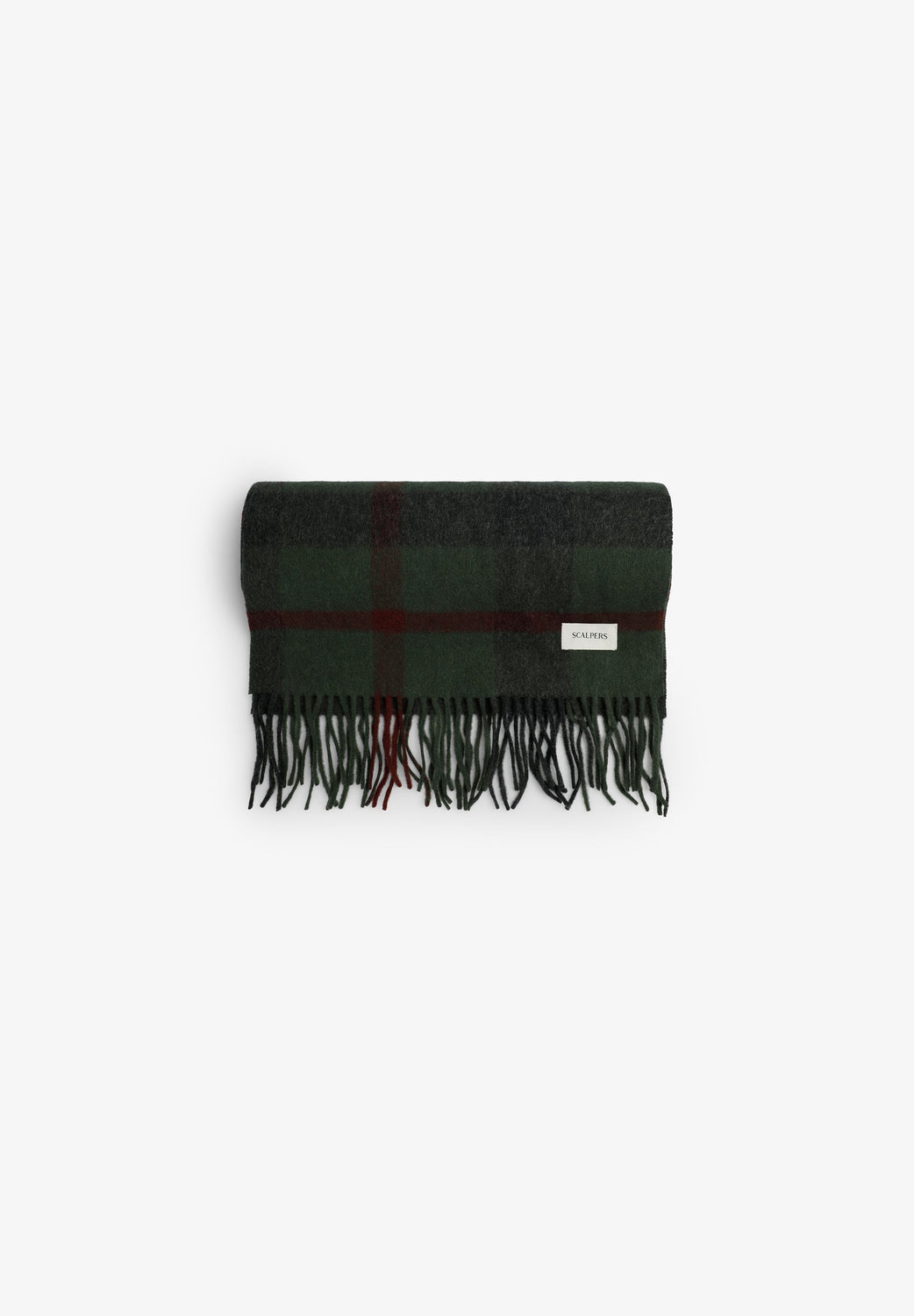 Scarf made of a wool and cashmere blend. Tartan print. Fringing. Embroidered logo. Label detail.