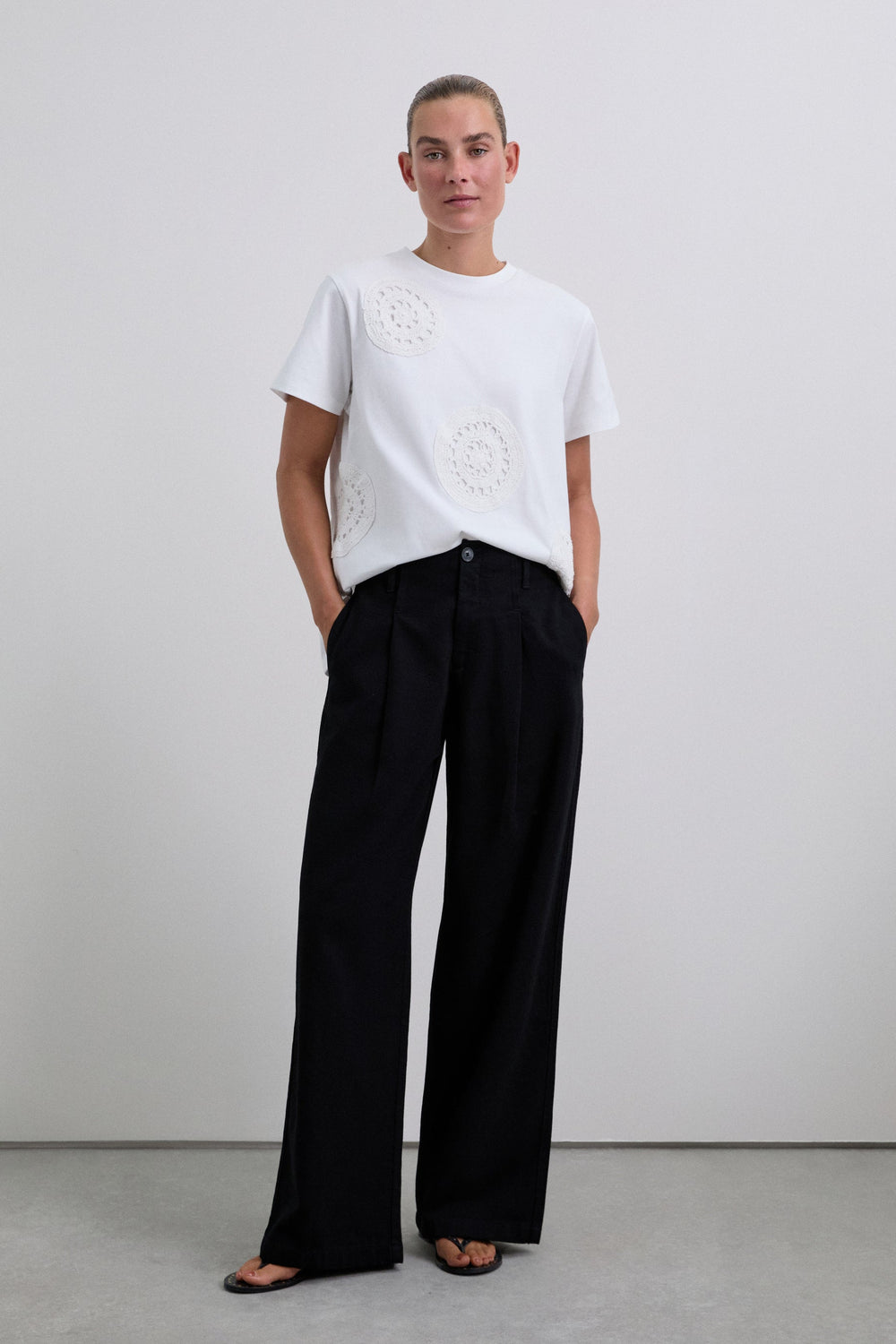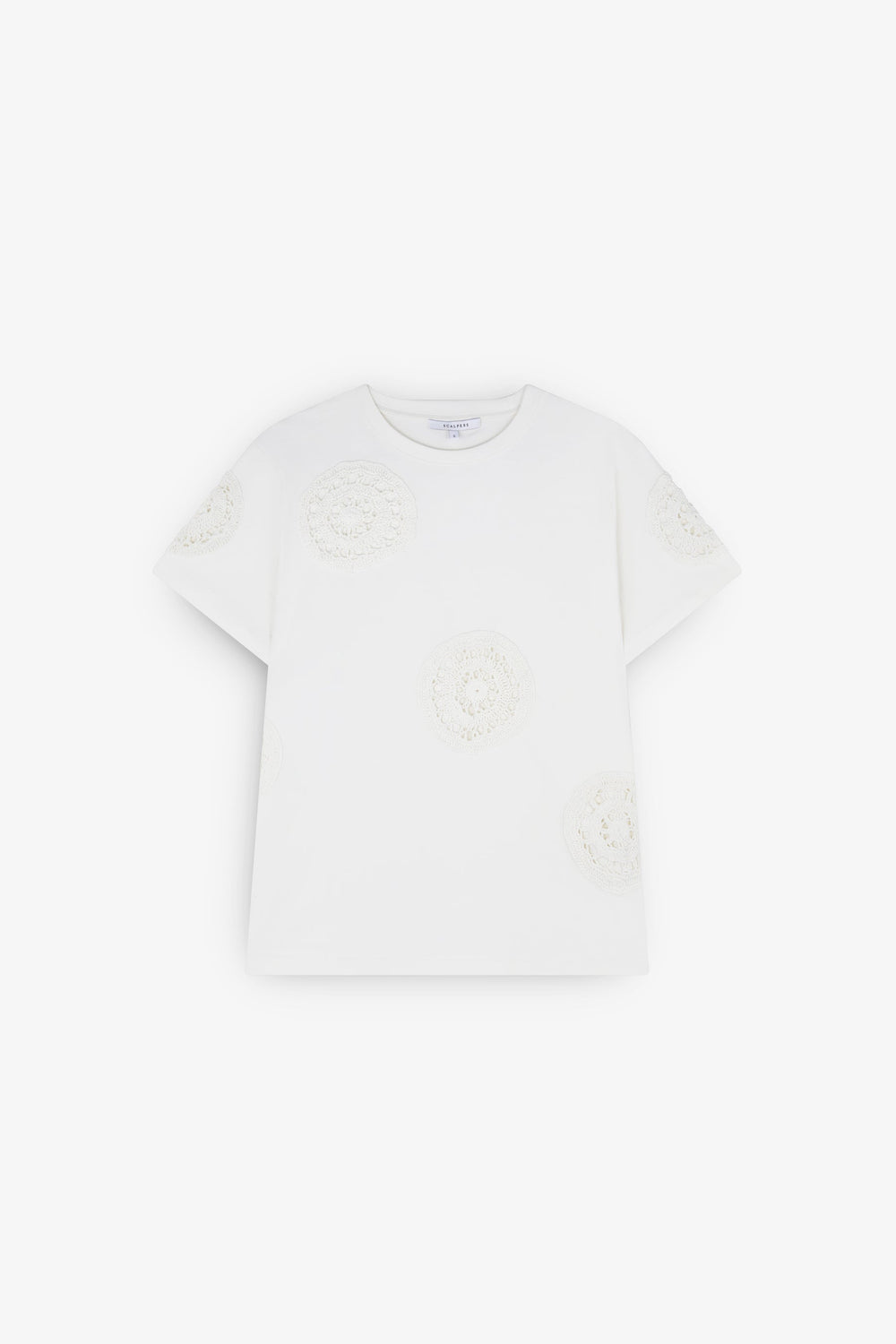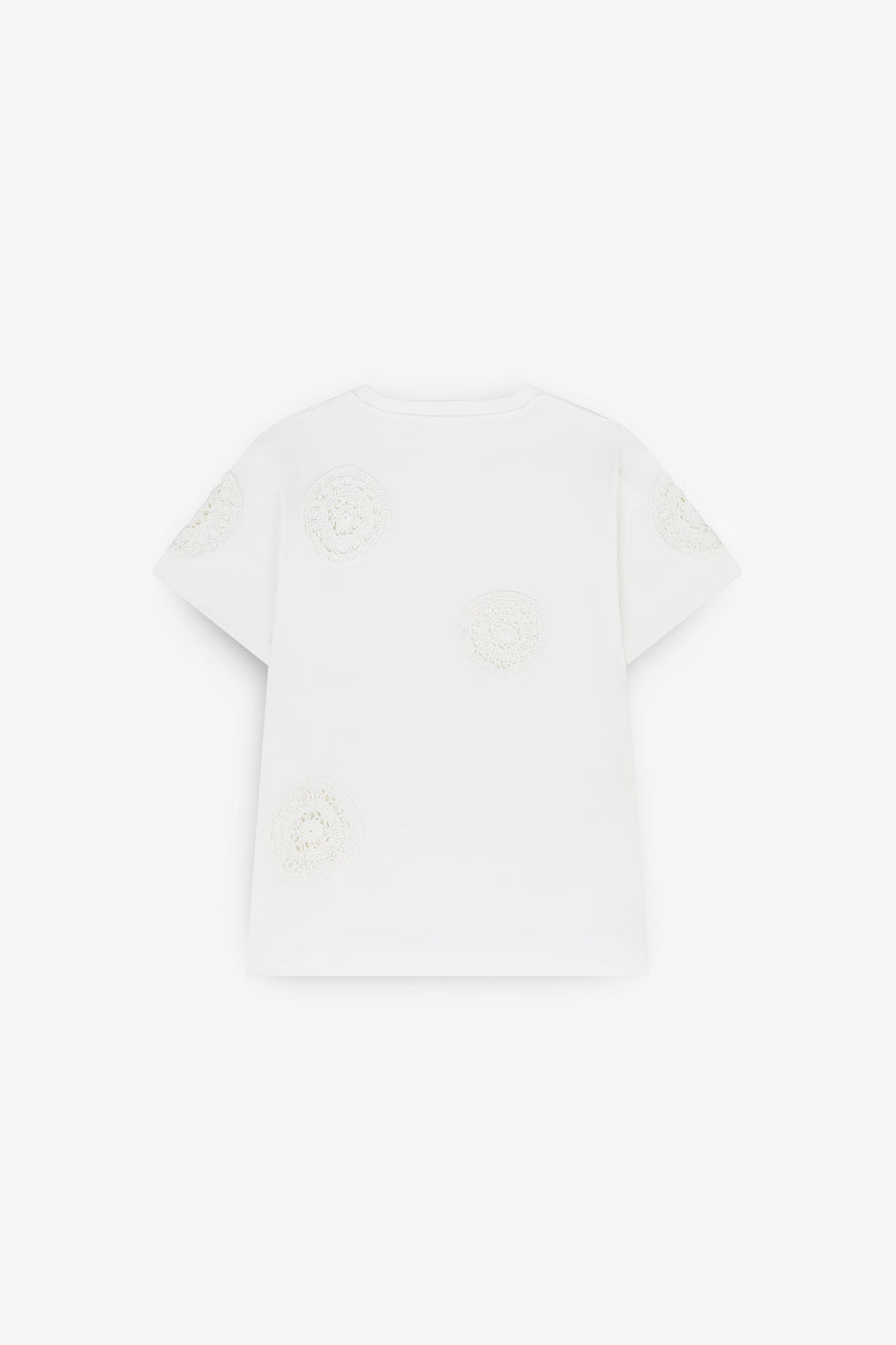 T-shirt made of 100% BCI cotton. Crochet motifs on chest and back. Regular fit, round neck and short sleeves.