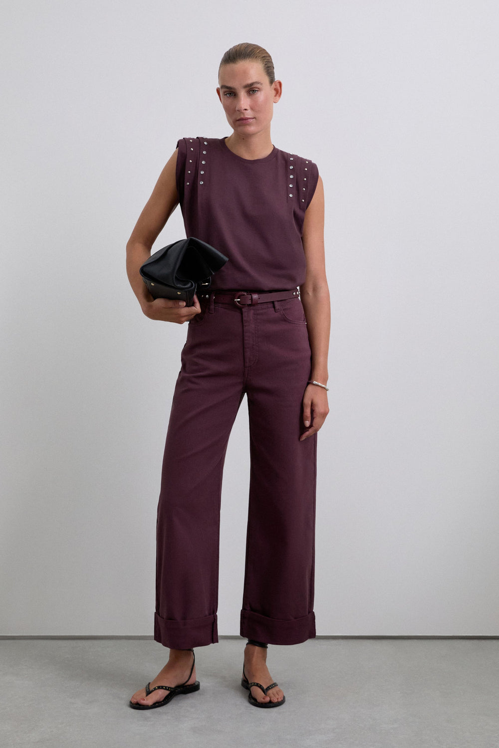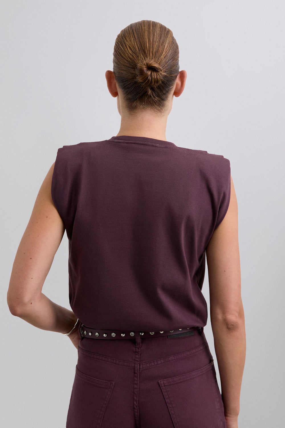T-shirt made of 100% BCI cotton. Regular Fit. Round neck and sleeveless design. Studded detail on the shoulders.