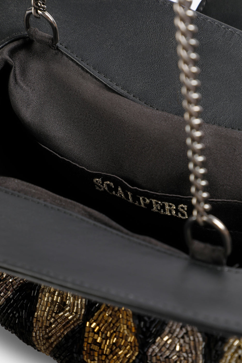 Handbag. Beaded detail. Detachable metal crossbody strap. Magnetic closure. Embroidered logo detail on the inside.