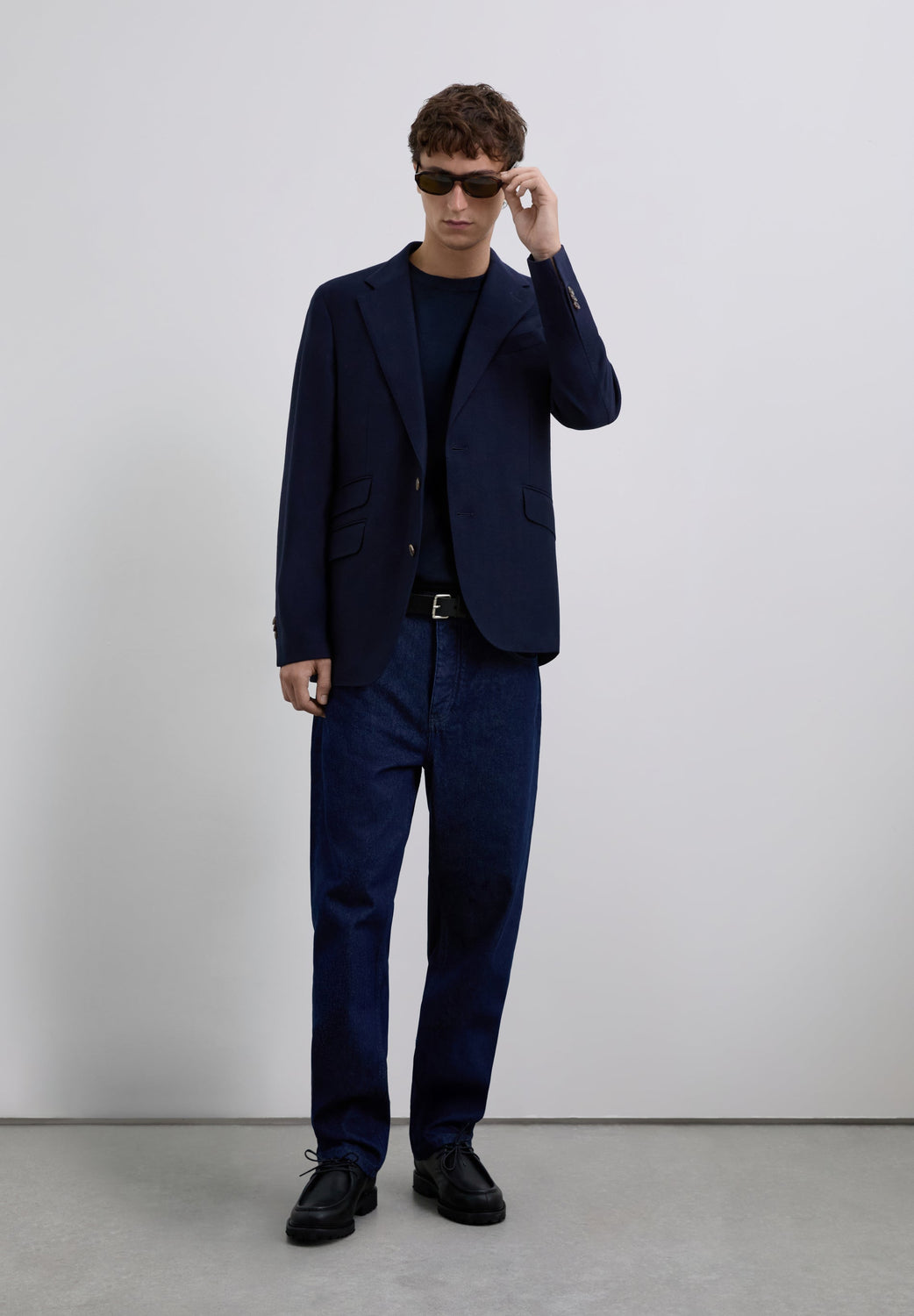 Jacket made of slightly stretchy virgin wool. With classic lapel, chest pocket with buttonhole and three slanted flap pockets. Two button fastening at the front.