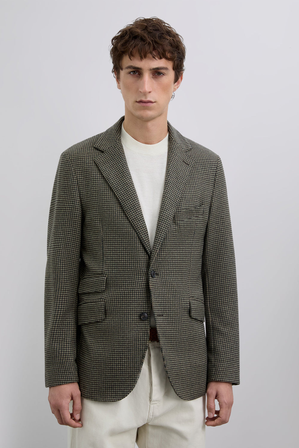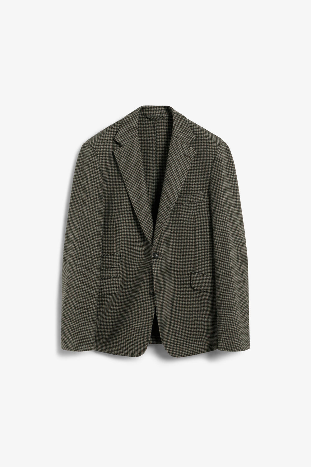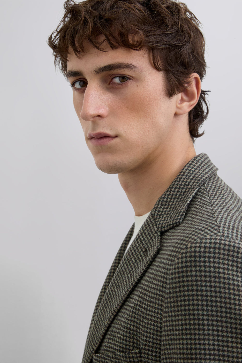 Check blazer. Made of a wool blend. Regular fit. Notched lapel collar. Button fastening. Flap and ticket pockets. Long sleeves with working buttoned cuffs.