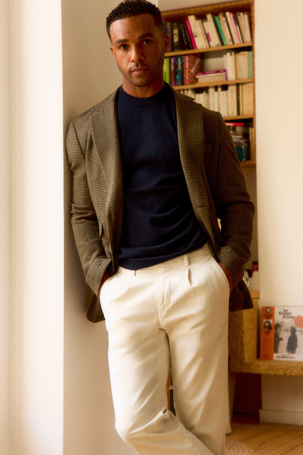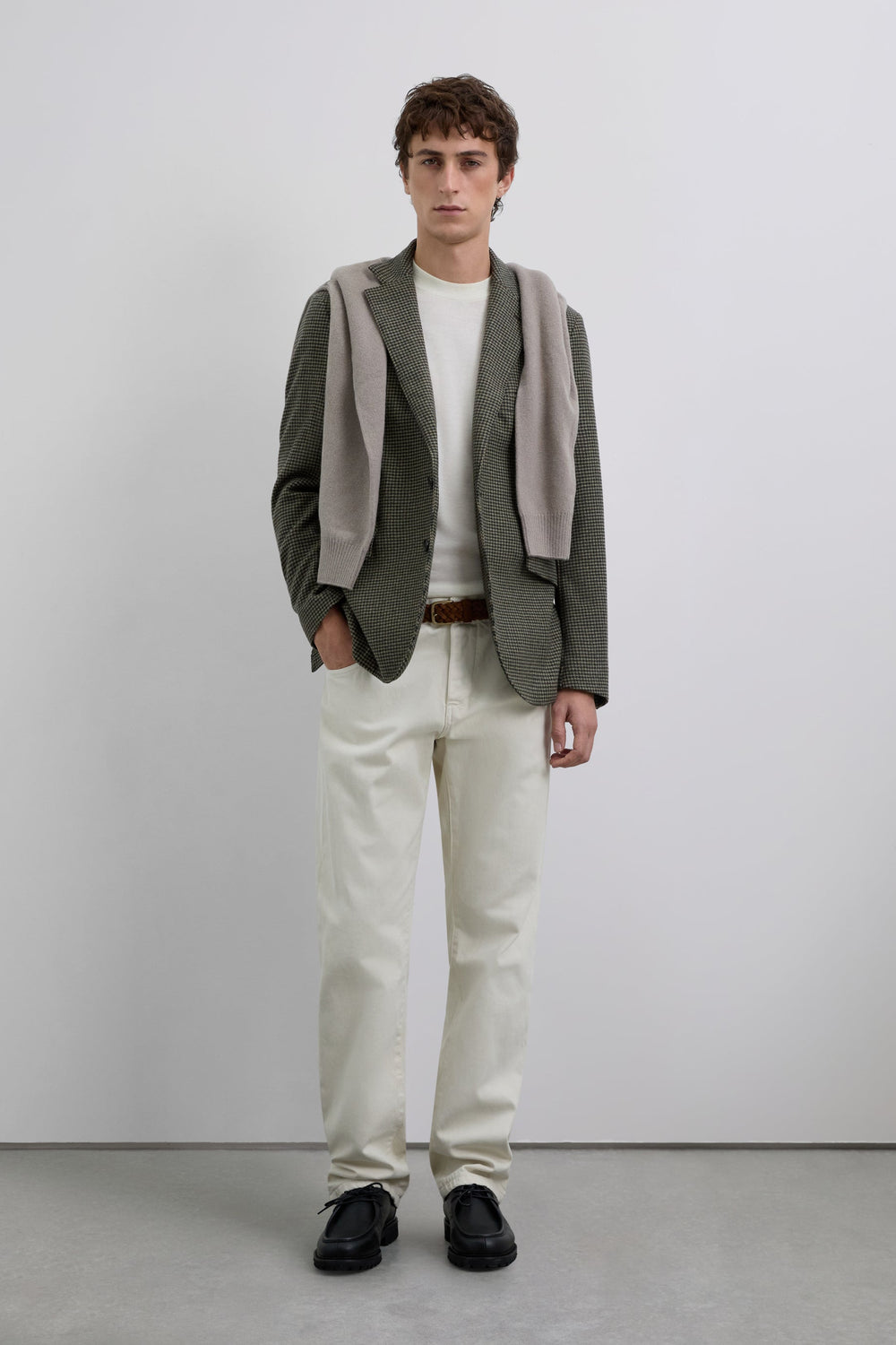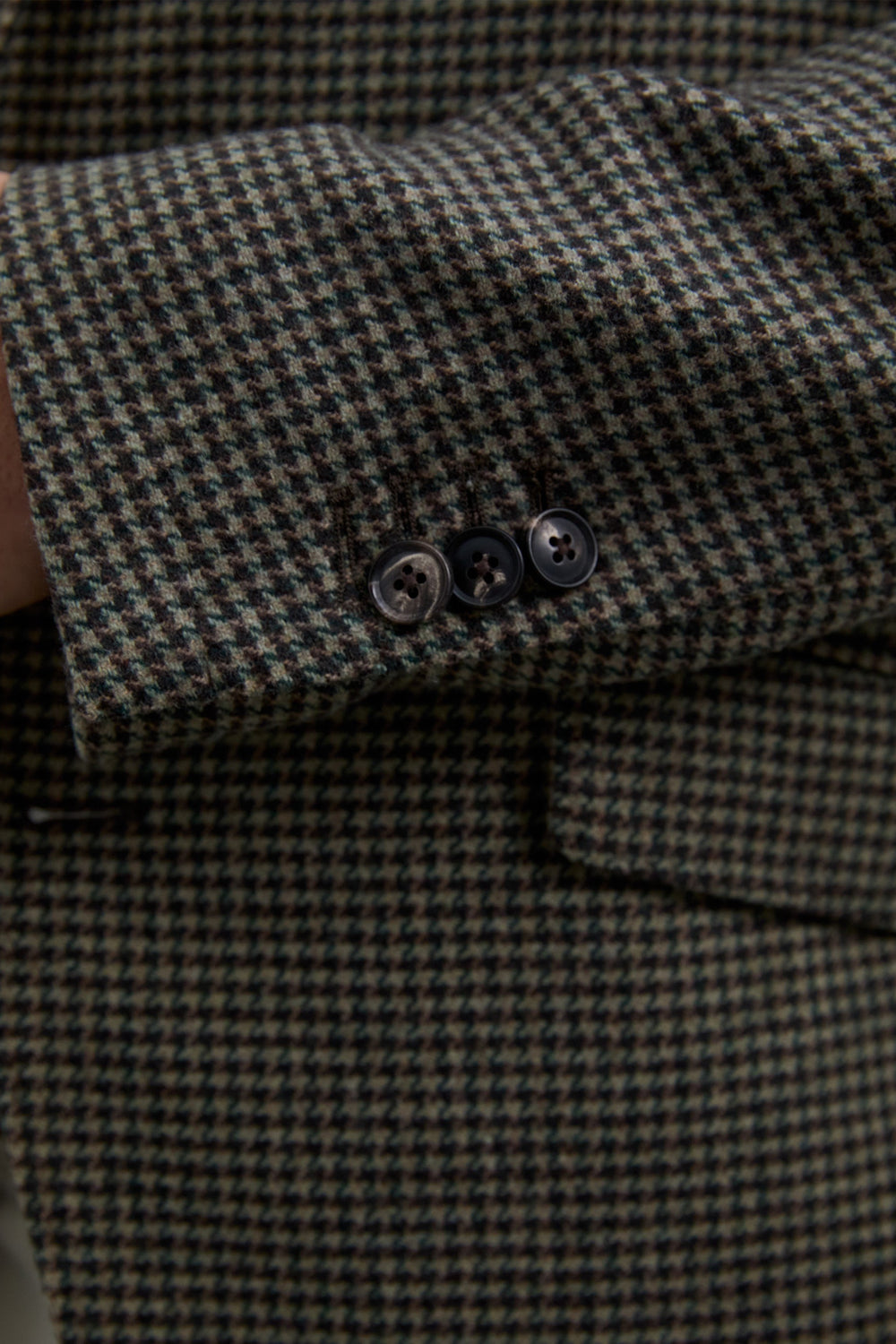 Check blazer. Made of a wool blend. Regular fit. Notched lapel collar. Button fastening. Flap and ticket pockets. Long sleeves with working buttoned cuffs.