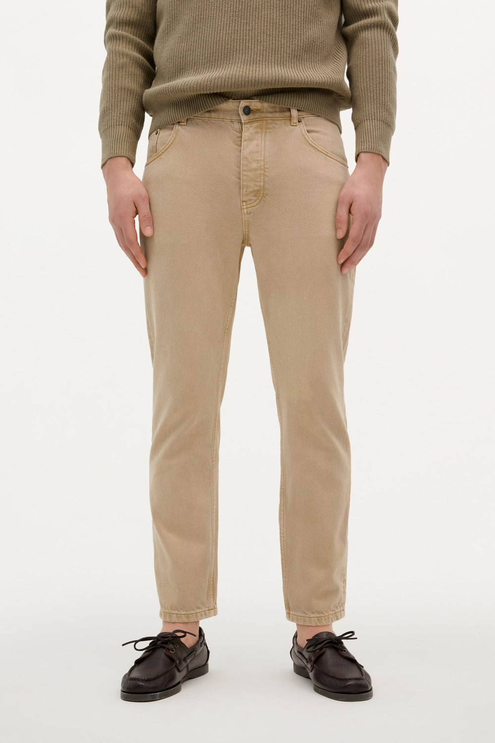 Jeans confeccionados en mezcla de algodón. Corte cropped, cierre con botón y cremallera y bolsillos laterales y traseros. Trabillas en cintura.
