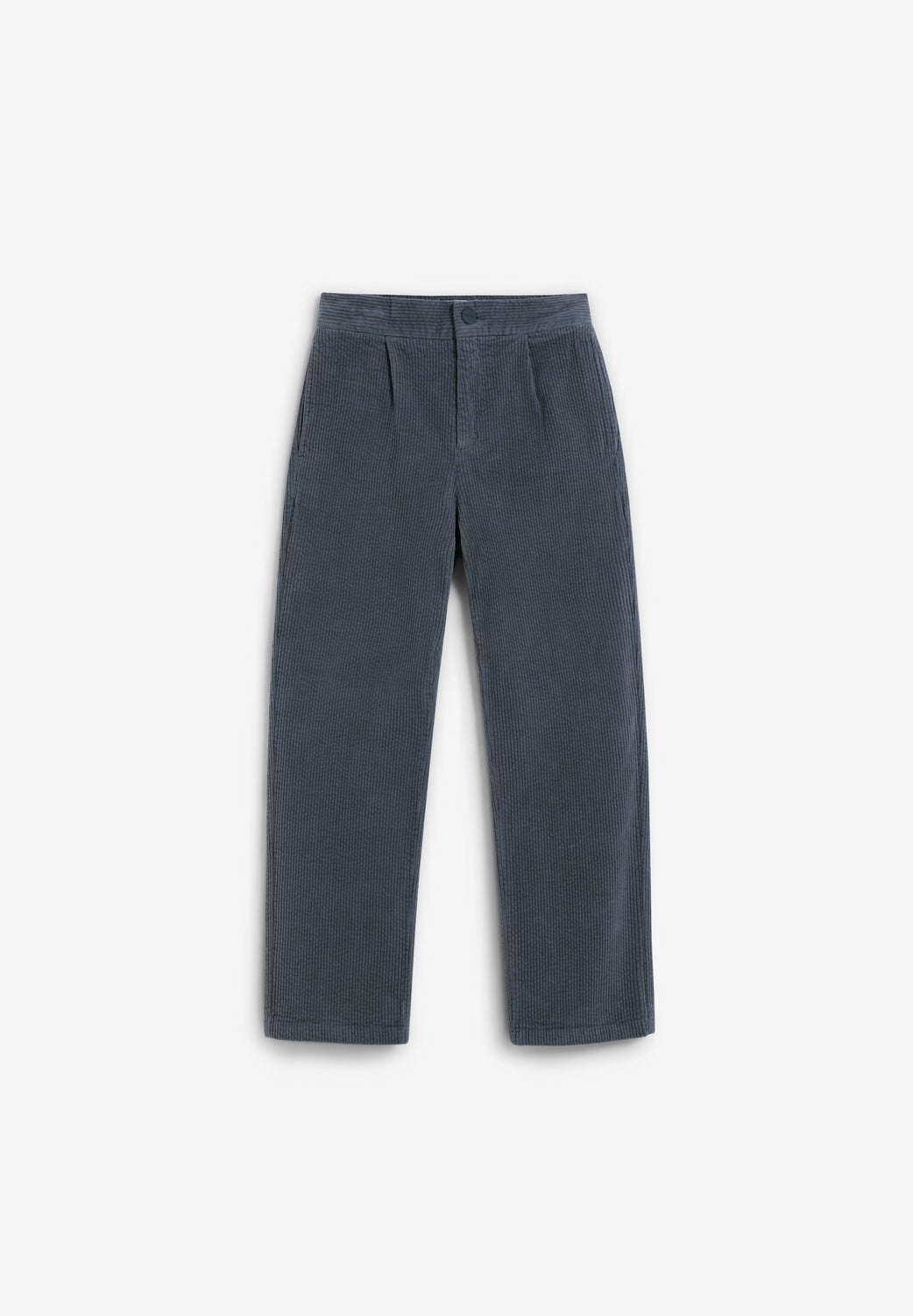 Straight corduroy trousers made of a slightly stretch cotton blend fabric Button closure. Front and back slanted pockets. Back label detail with logo.