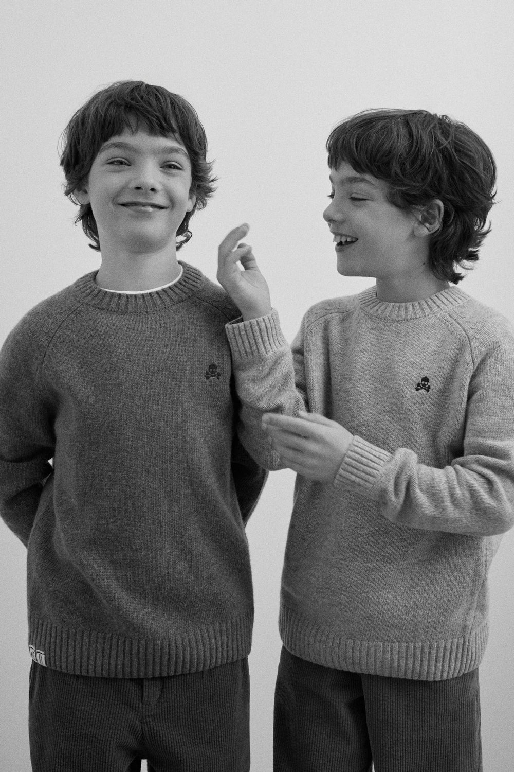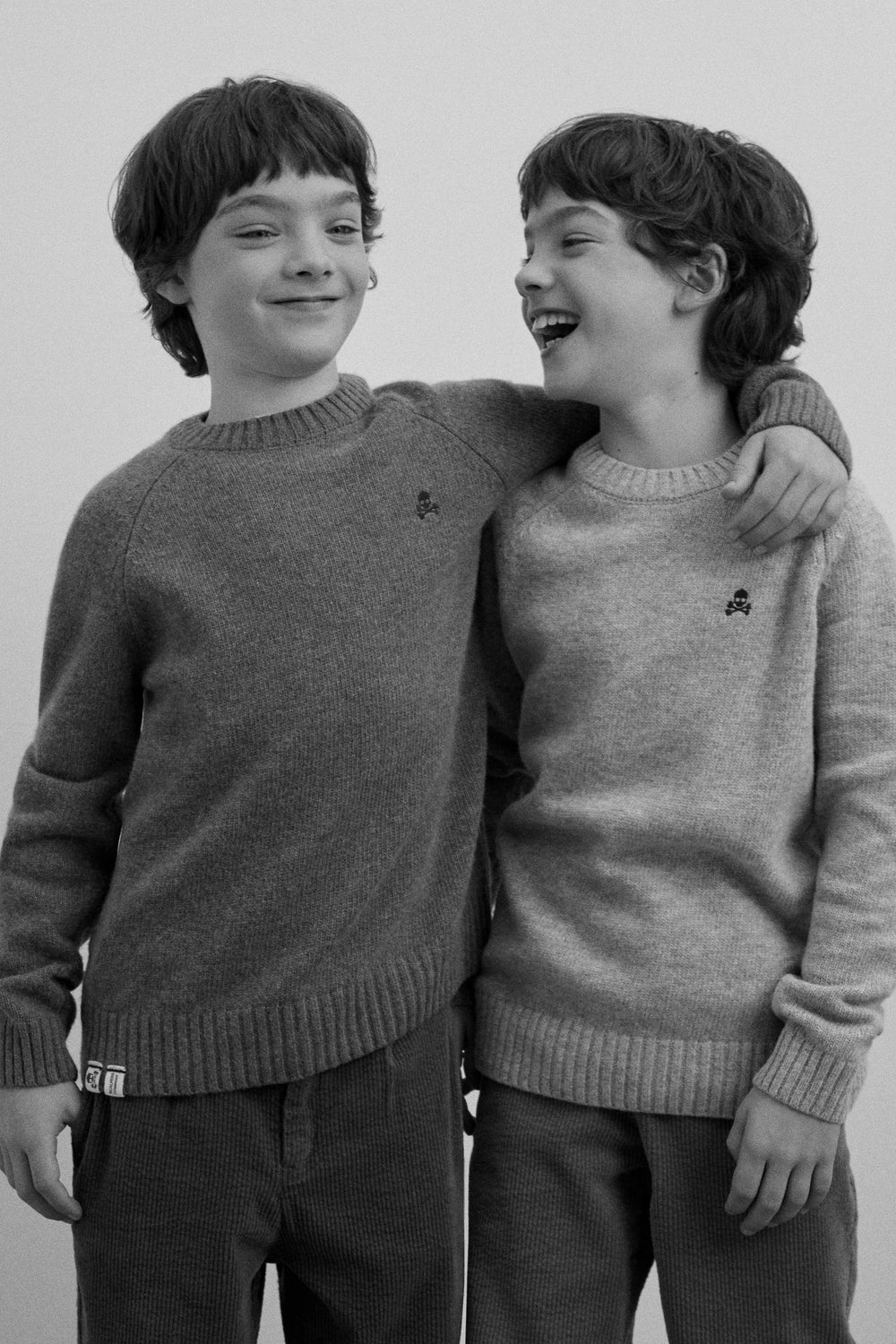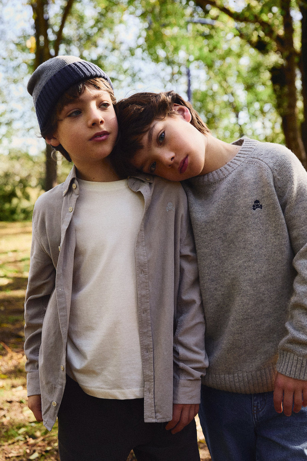 Trui met lange mouwen. Ronde hals. Regular fit. Ribboorden. Geborduurd logo op de voorkant