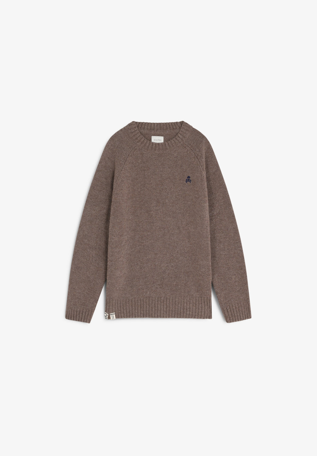 Sweater made of a wool blend. Regular fit, round neck and long raglan sleeves. Contrast embroidered skull.