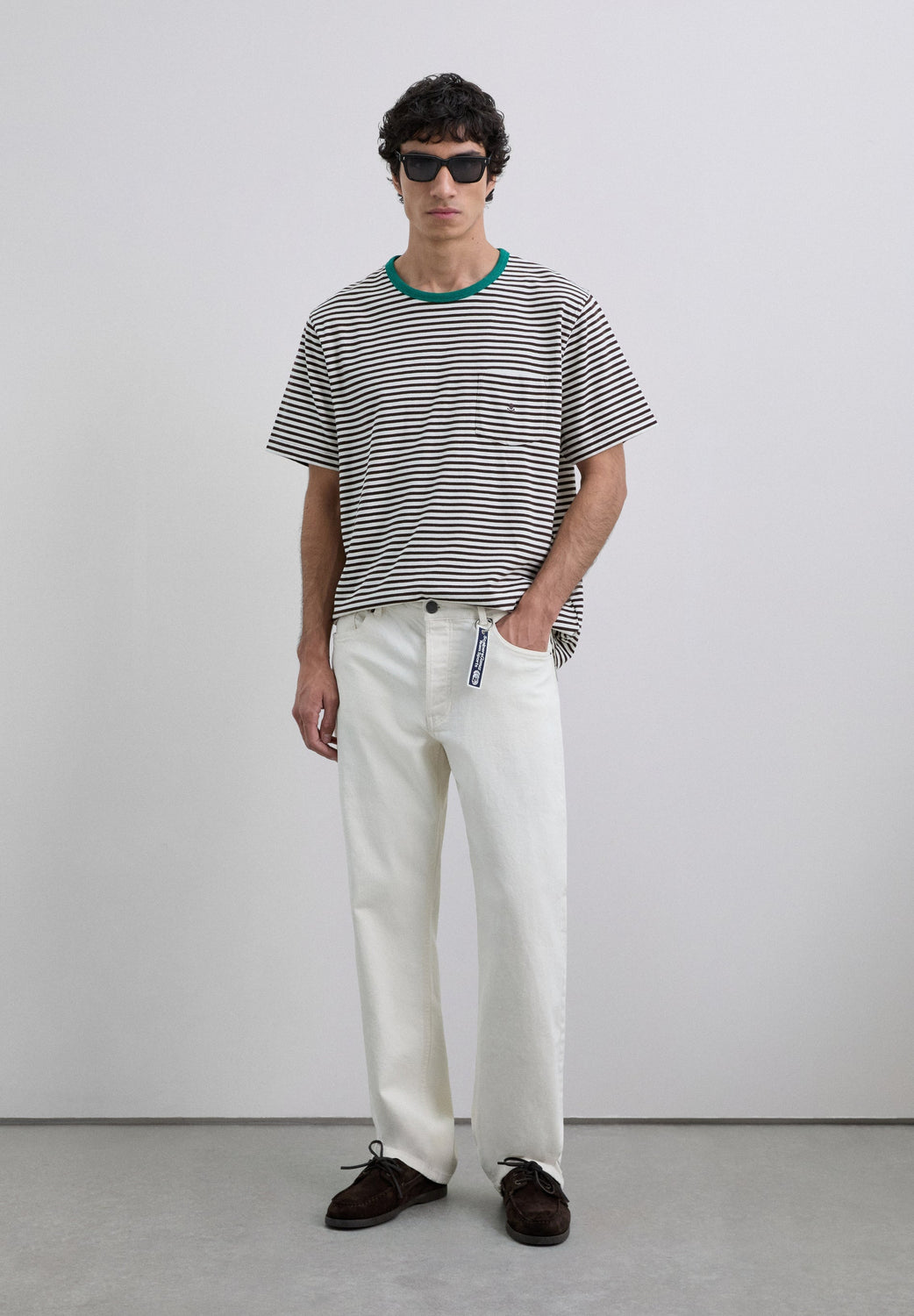T-shirt gemaakt van 100% BCI-katoen. Gestreepte print. Korte mouw. Ronde contrasterende hals. Borstzak. Geborduurde doodskop.