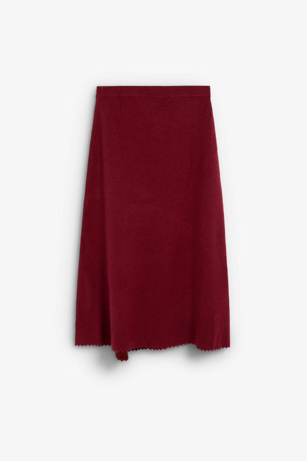 De rok heeft een asymmetrische zoom. Uitgevoerd met stikseldetail langs de rok, van de zijkant tot de zoom. De zoom is afgewerkt met speciale stiksels. Elastiek in de taille.
