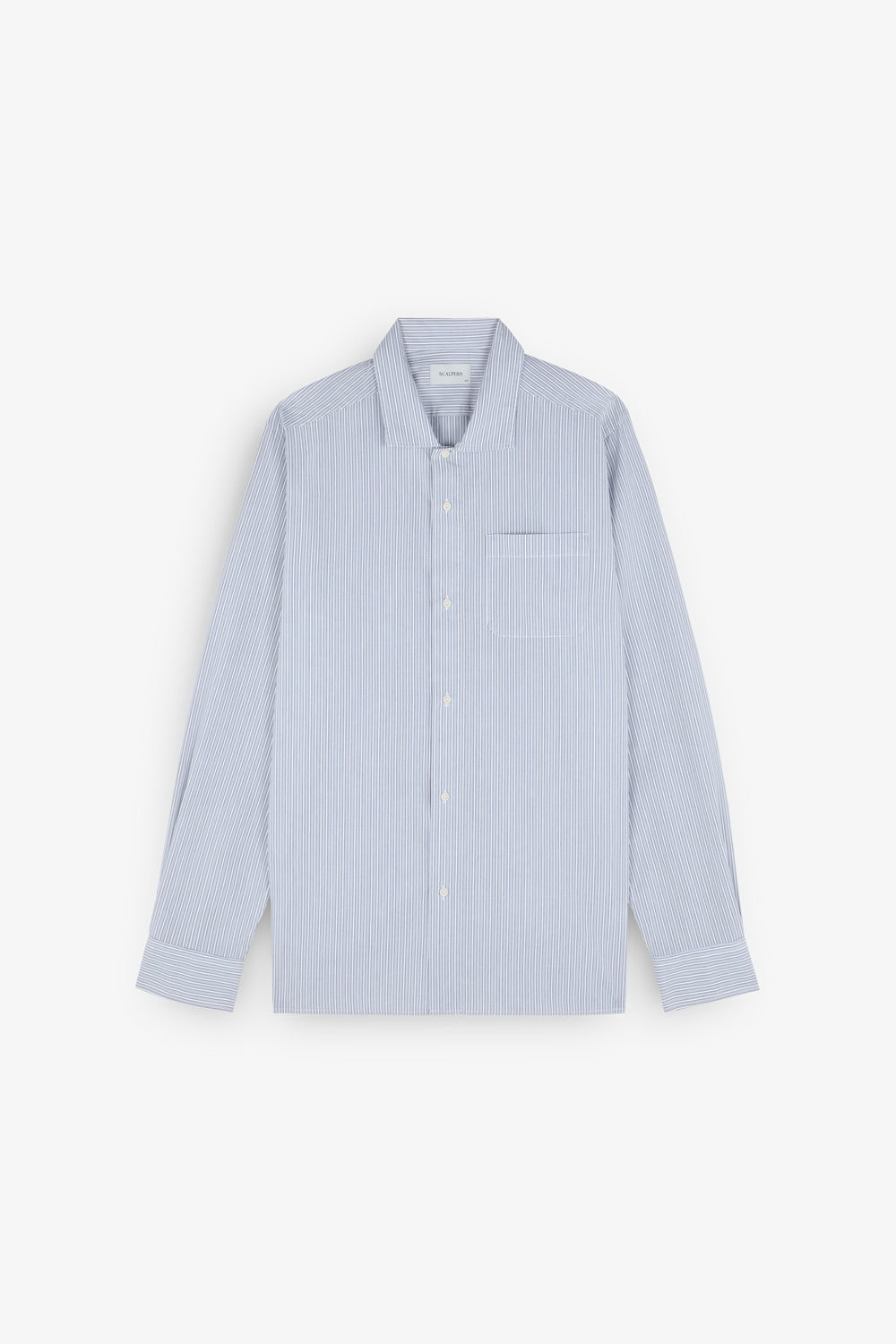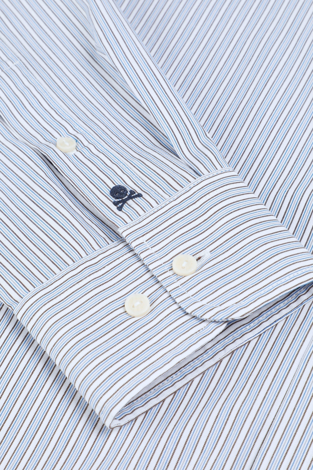 Overhemd gemaakt van 100% BCI-katoen. Lange mouw. Gestreepte print. Borstzak. Geborduurd contrasterend doodshoofd op de manchet.