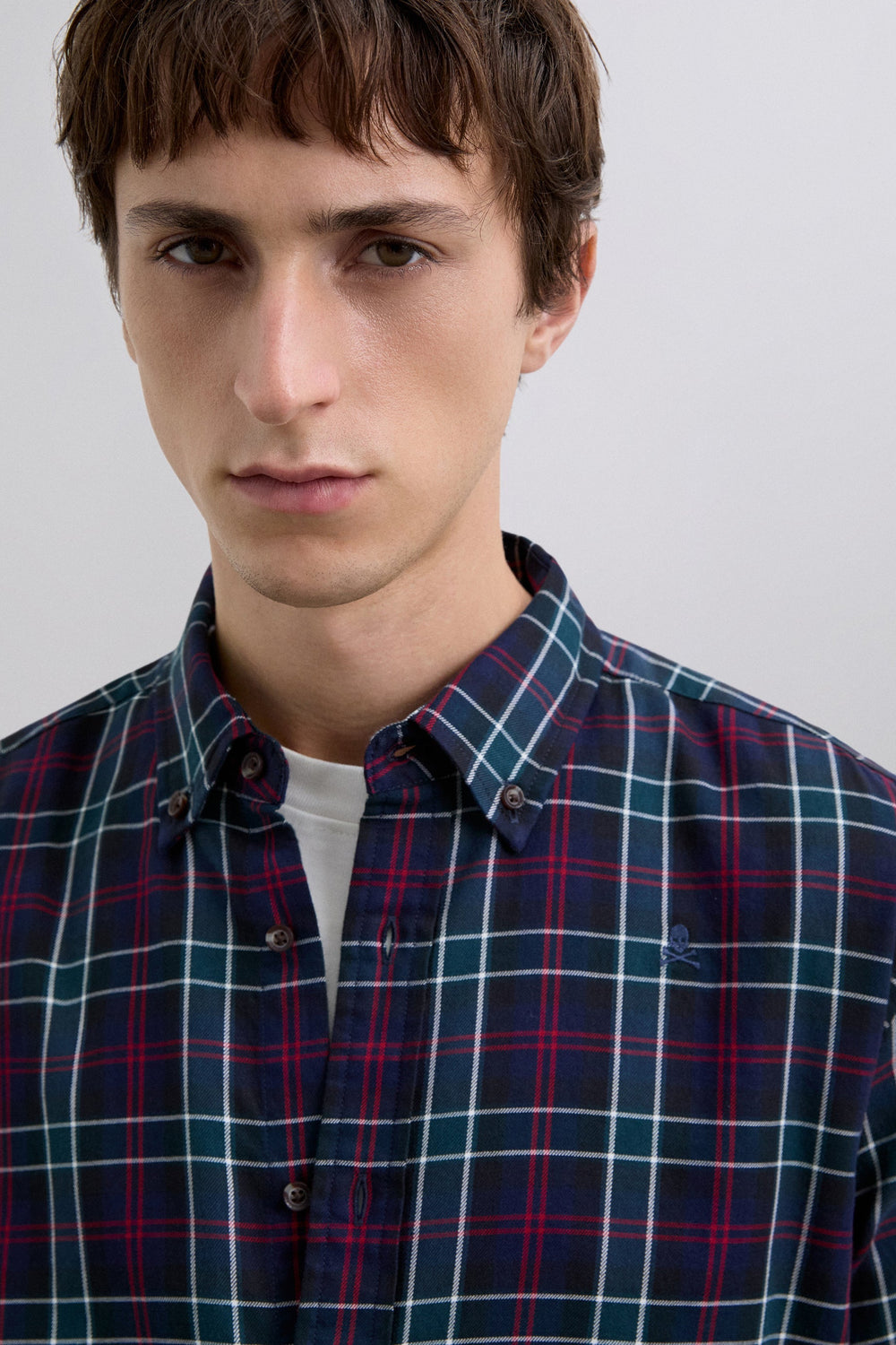 Overhemd van BCI-katoen met ruitmotief. Regular fit, geknoopte kraag en knoopsluiting. Lange mouwen met manchetten met knopen en contrasterende geborduurde doodskop op de borst.