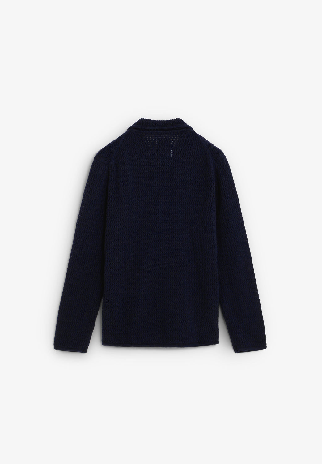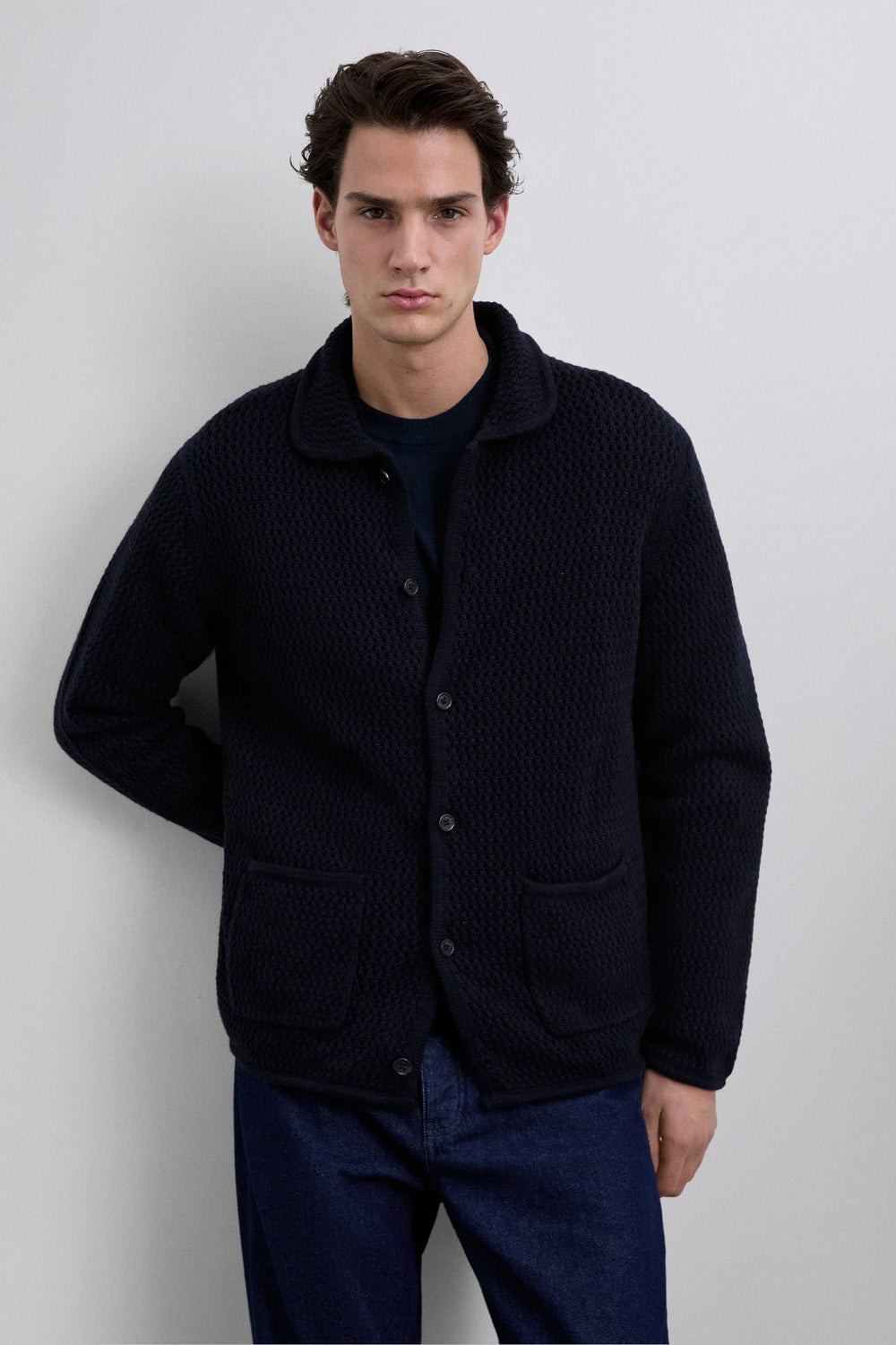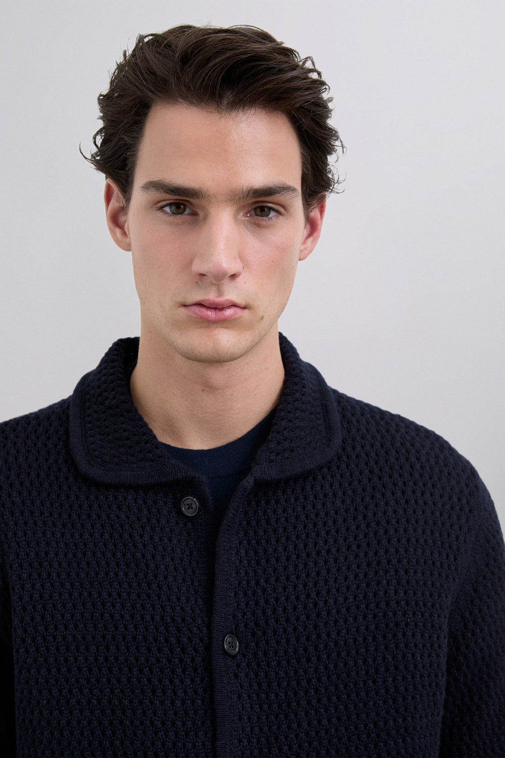 Vest gemaakt van wol. Knoopsluiting voor. Overhemdkraag. Lange mouw. Twee zakken aan de voorkant. Geborduurd label met logo aan de binnenkant.
