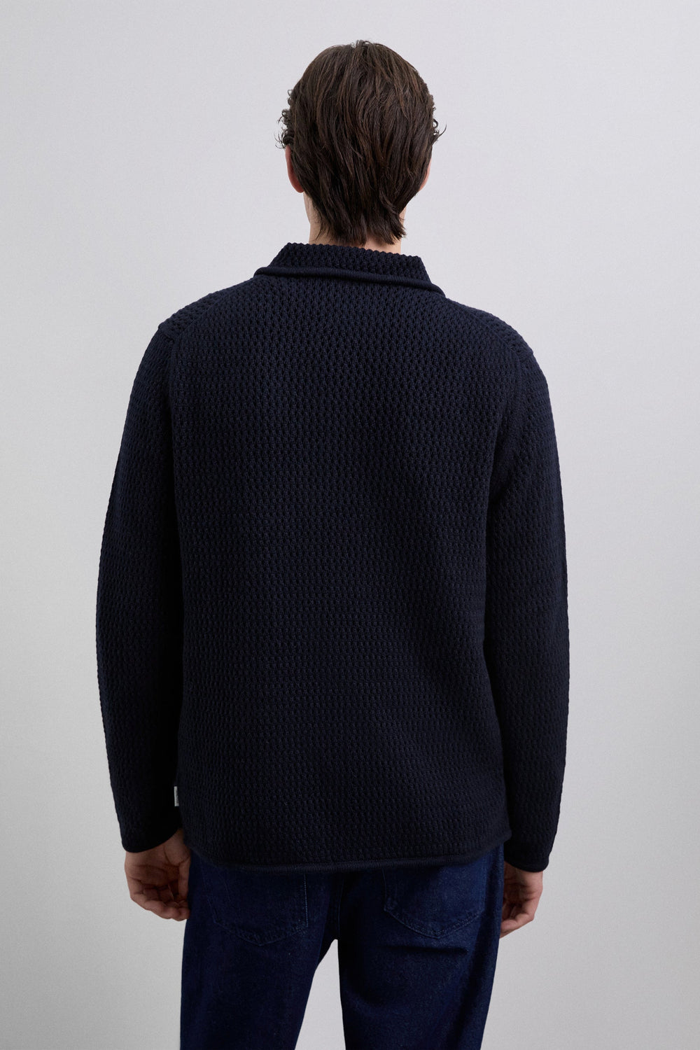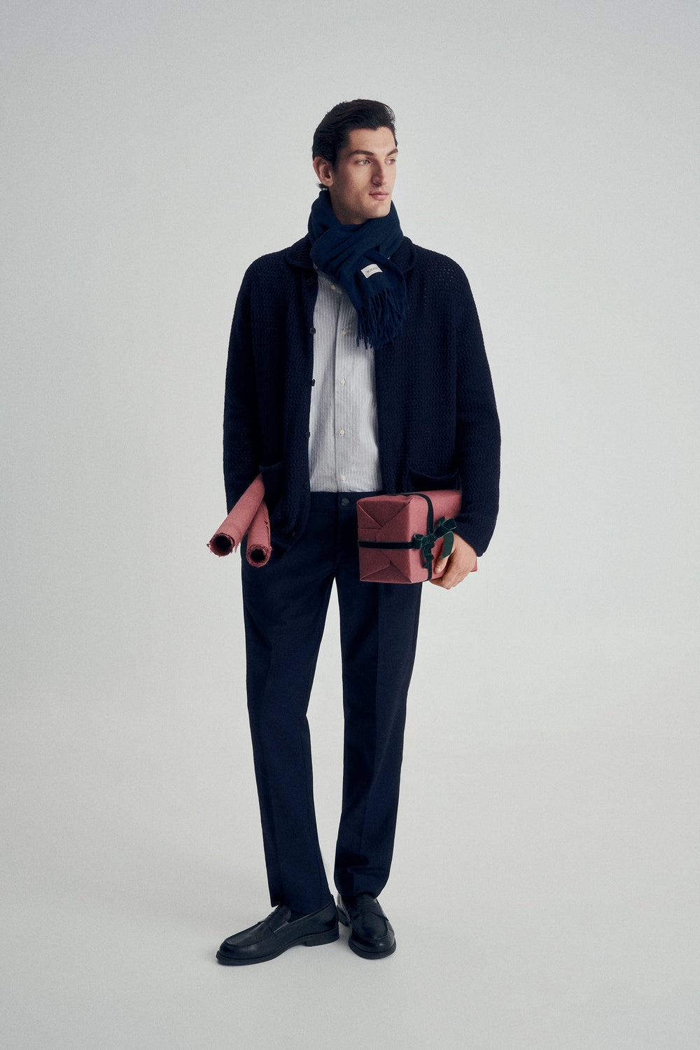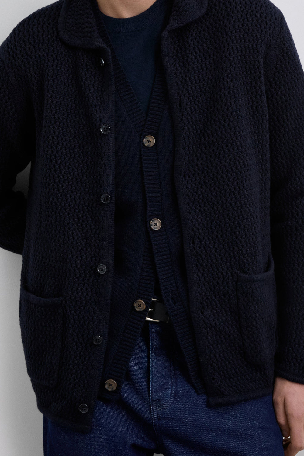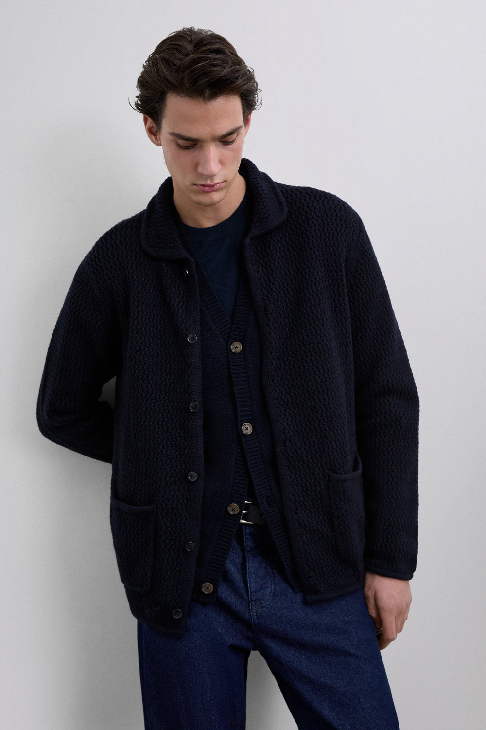 Vest gemaakt van wol. Knoopsluiting voor. Overhemdkraag. Lange mouw. Twee zakken aan de voorkant. Geborduurd label met logo aan de binnenkant.