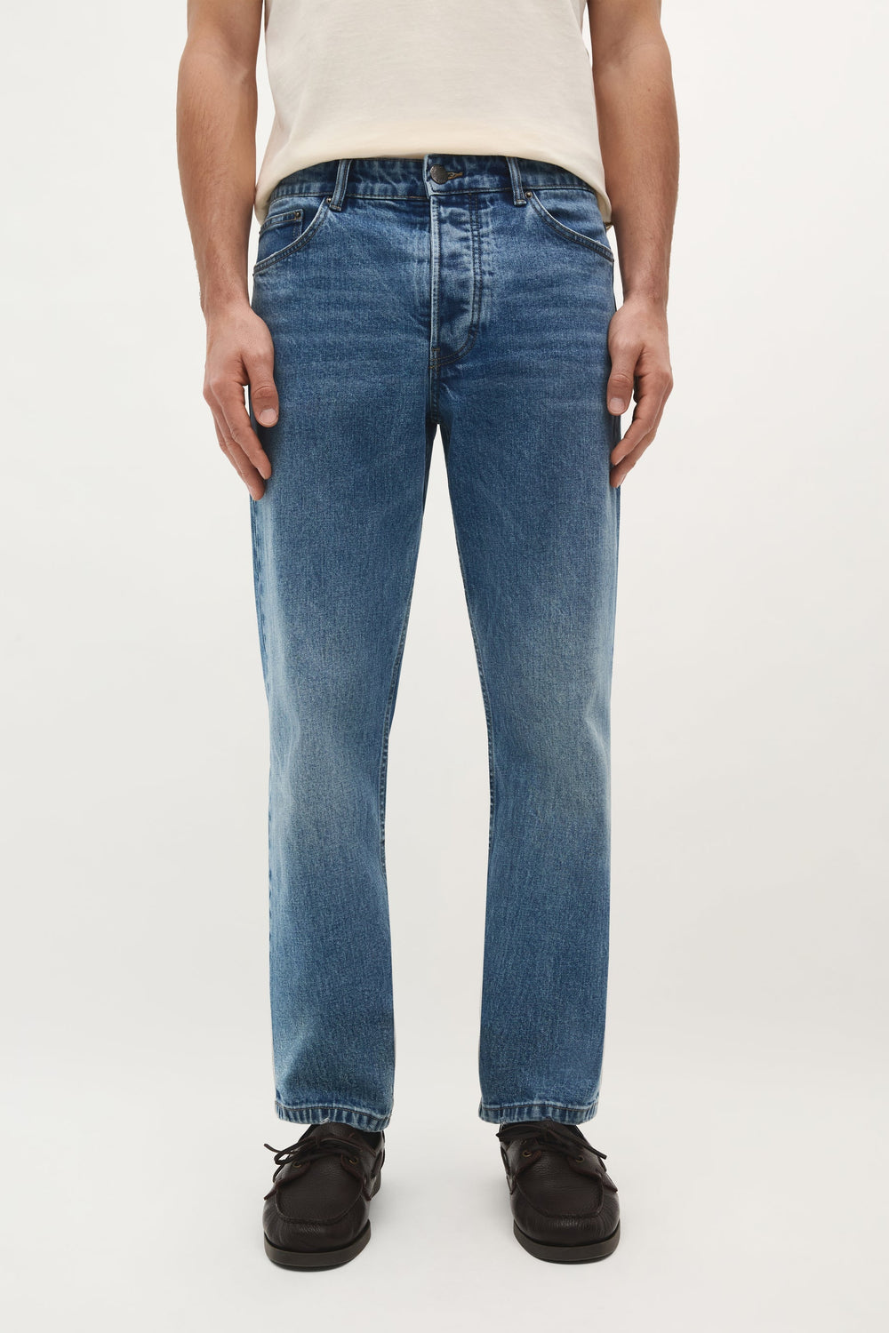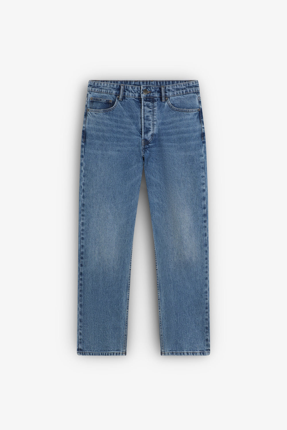 Jeans gemaakt van BCI-katoen met lichte stretch. Regular fit, sluiting met knoop en rits, voor- en achterzakken. Riemlussen op de tailleband.